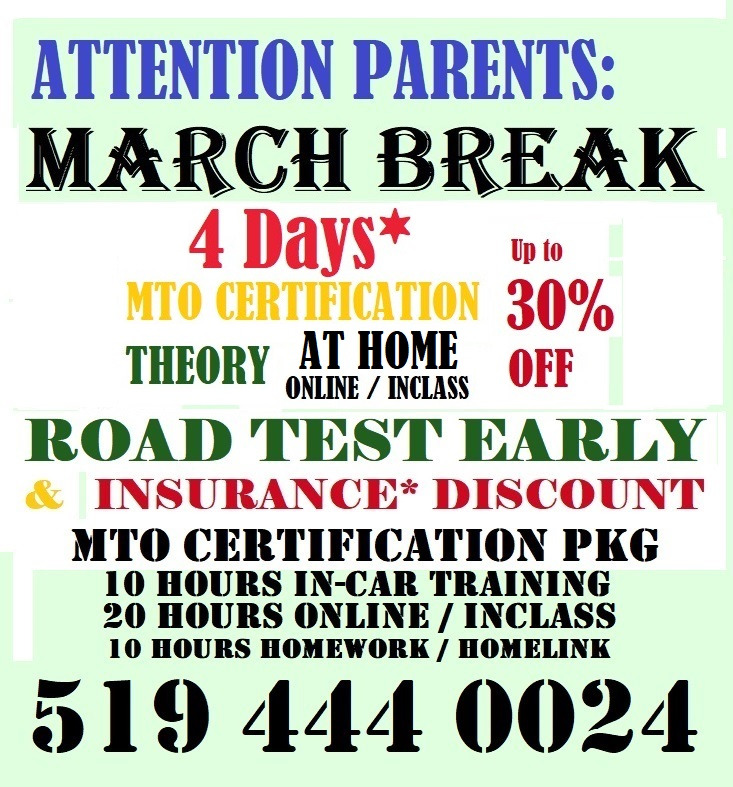 Road test early in 8 months instead of 12 months after getting G1 license and Insurance* Discount. Certificate $20